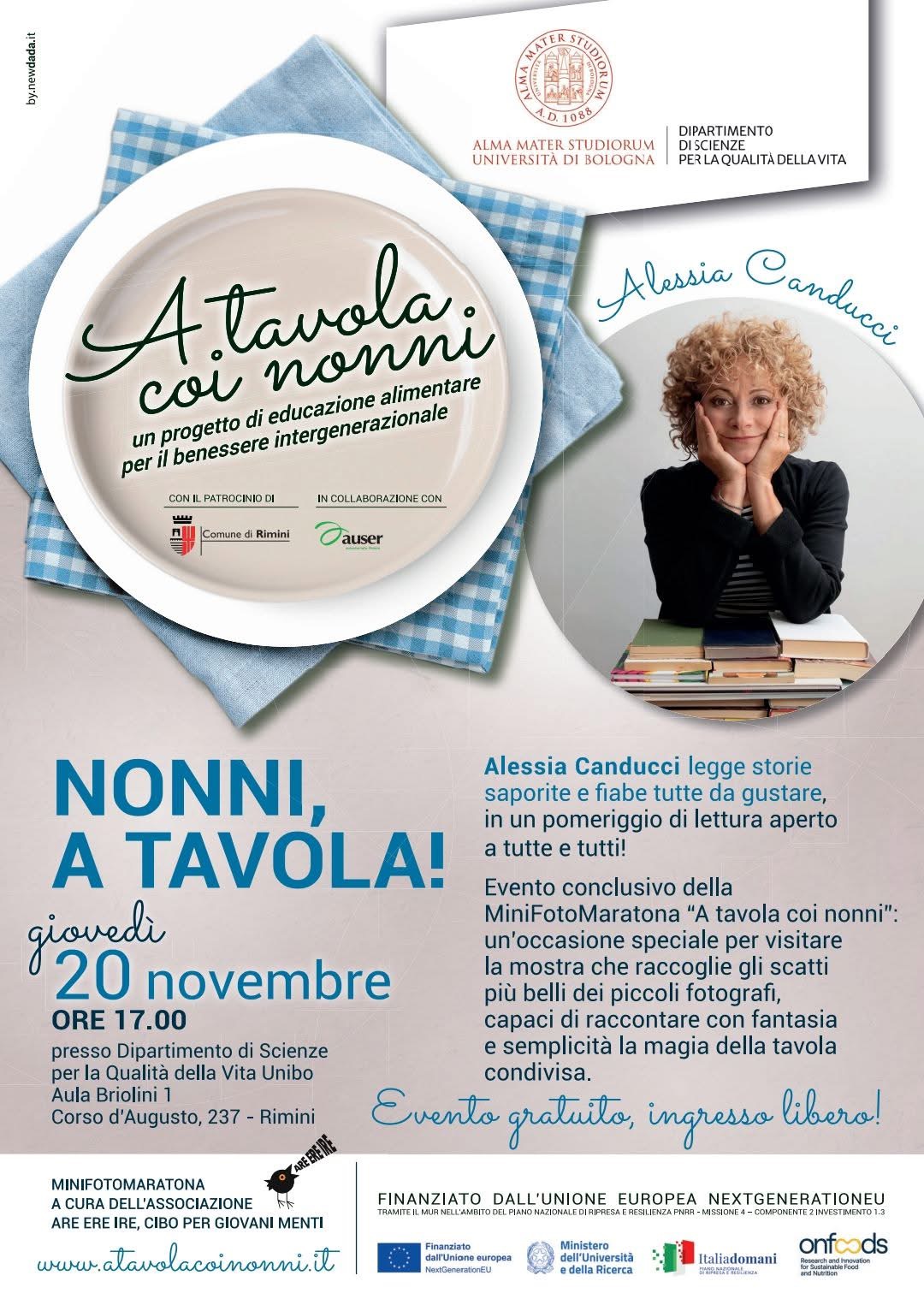 NONNI, A TAVOLA! Alessia Canducci legge storie saporite e fiabe tutte da gustare, in un pomeriggio di lettura aperto a tutte e tutti! Giovedì 20 novembre ORE 17.00 presso Dipartimento di Scienze per la Qualità della Vita Unibo Aula Briolini 1 - Corso d'Augusto, 237 - Rimini Evento conclusivo della MiniFotoMaratona "A tavola coi nonni" […]